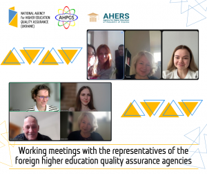 Vice Head Nataliia Stukalo and secretariat staff members Tetiana Kovalska and Anna Shylina met with representatives of the Accreditation Agency in Health and Social Sciences (AHPGS), Germany, and the Agency for Higher Education of the Republic of Srpska (AHERS), Bosnia and Herzegovina. During the meetings, colleagues discussed issues relating to the improvement of cross-border quality assurance procedures, ESG compliance and prospects for cooperation.