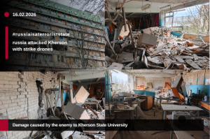 On the night of 16 February, russian forces carried out yet another attack on the main building of Kherson State University. The shelling caused damage to lecture theatres and laboratories in the Faculty of Physics and Mathematics, where future teachers and specialists for Ukrainian schools were being trained.